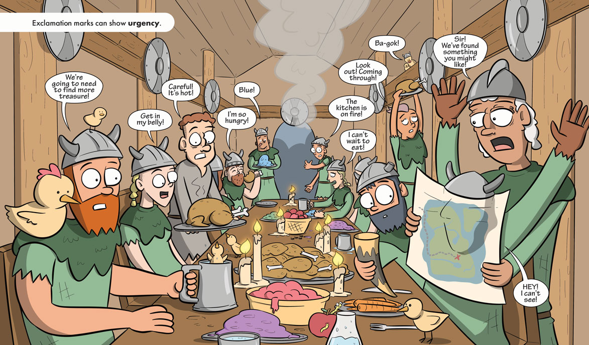 Join a crew of adventurous Vikings as they shout, cheer, and celebrate their way through a wild journey – all while teaching you how and when to use exclamation marks.