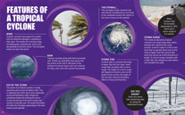 Shows cyclone formation, paths, and effects visually