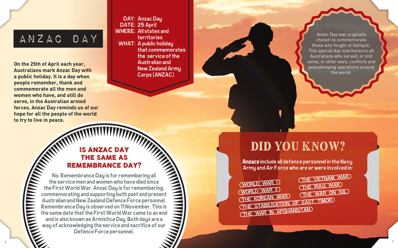 The Special Days series looks at some of Australia's important days, the history behind each day, and how Australians celebrate or commemorate the day. Inside each book, you'll find statistics, fun facts and photographs, as well as current information on how each special day plays a part in Australia's rich culture. Every book is a valuable resource designed to support Australian students and teachers and cover Australian Curriculum topics.