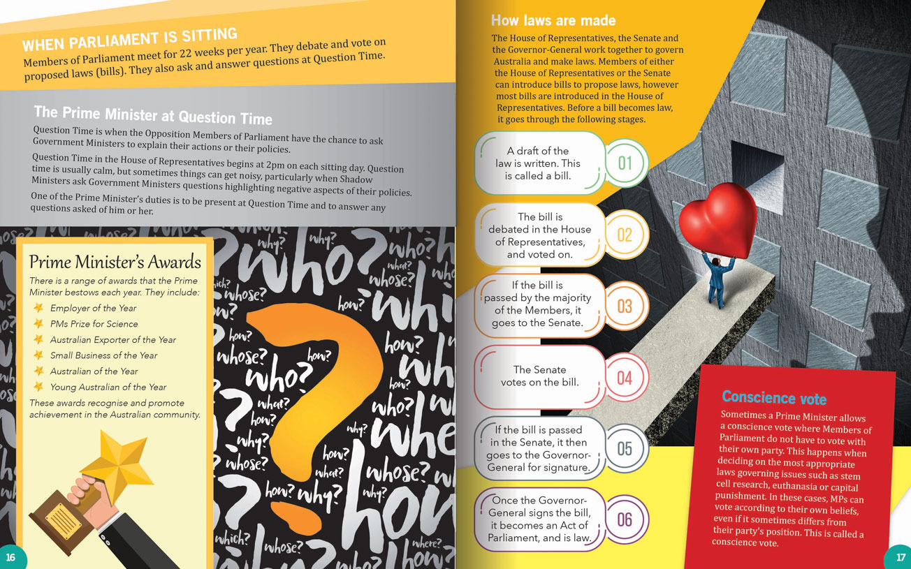 Taking a fresh new approach to the subject of how Australian society is structured and governed, this series explains some of the key roles in Australian civic life, from that of ordinary citizens to those of Members of Parliament, the Prime Minister and Governor-General. The titles explain the rights, responsibilities and privileges of individuals in each social position, and the relationships that exist between the Prime Minister, the Governor-General, Members of Parliament and private citizens. An excellent resource for civic studies, the series provides a comprehensive introduction to the law-making process, and insight into how the government and wider Australian society function.